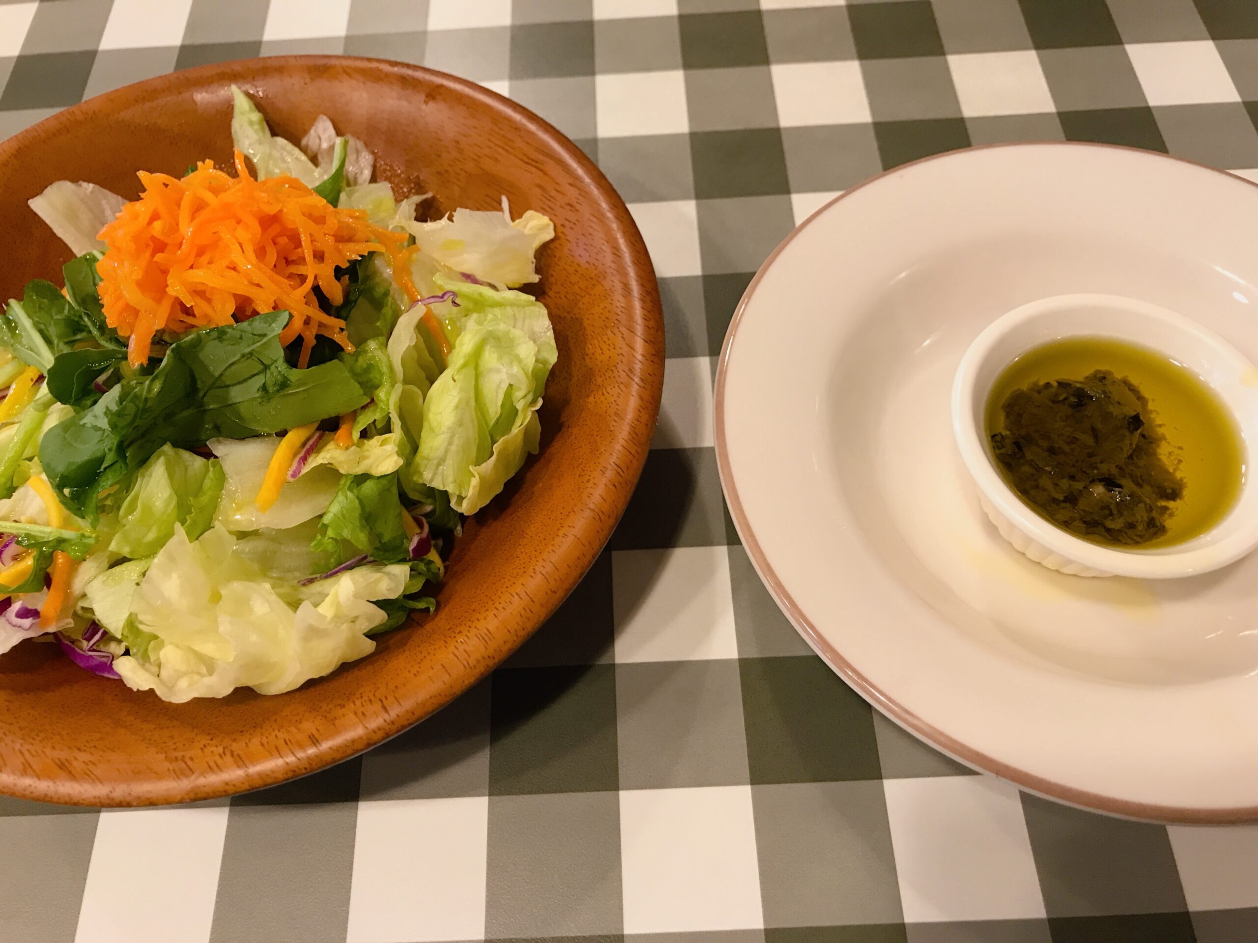 グリーンサラダとオリーブアンチョビペースト
